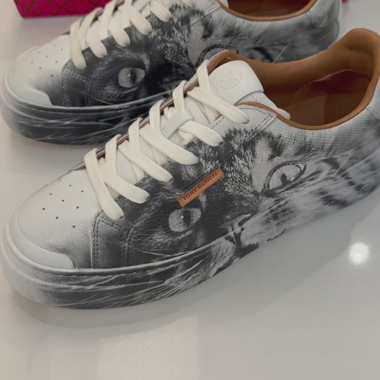 Tory Burch Ladybug Sneaker In Cat Portrait , Size 8, LIMITED EDITION